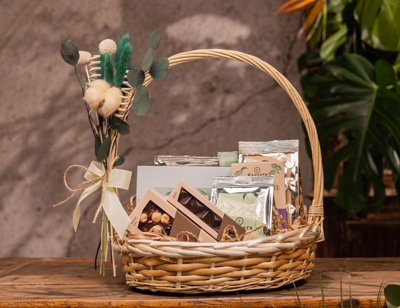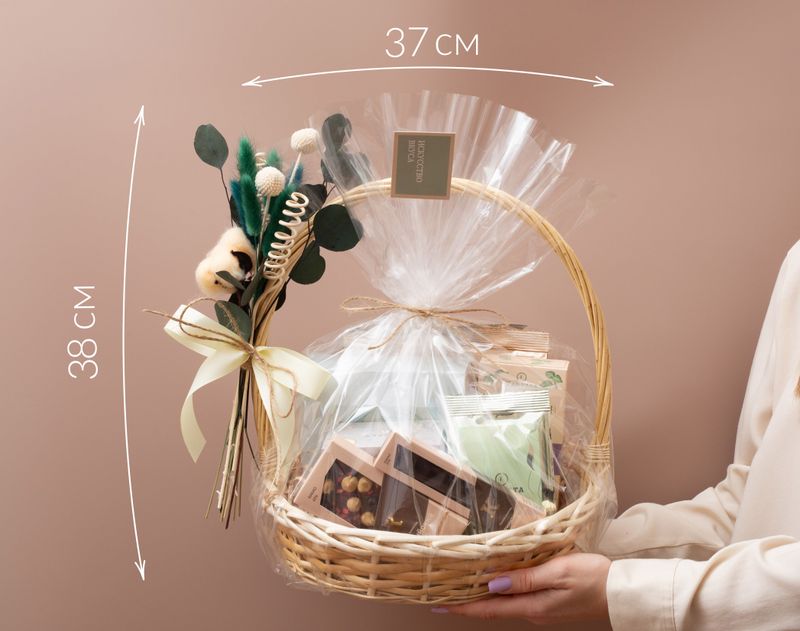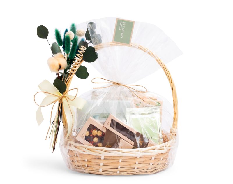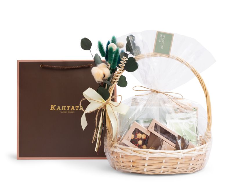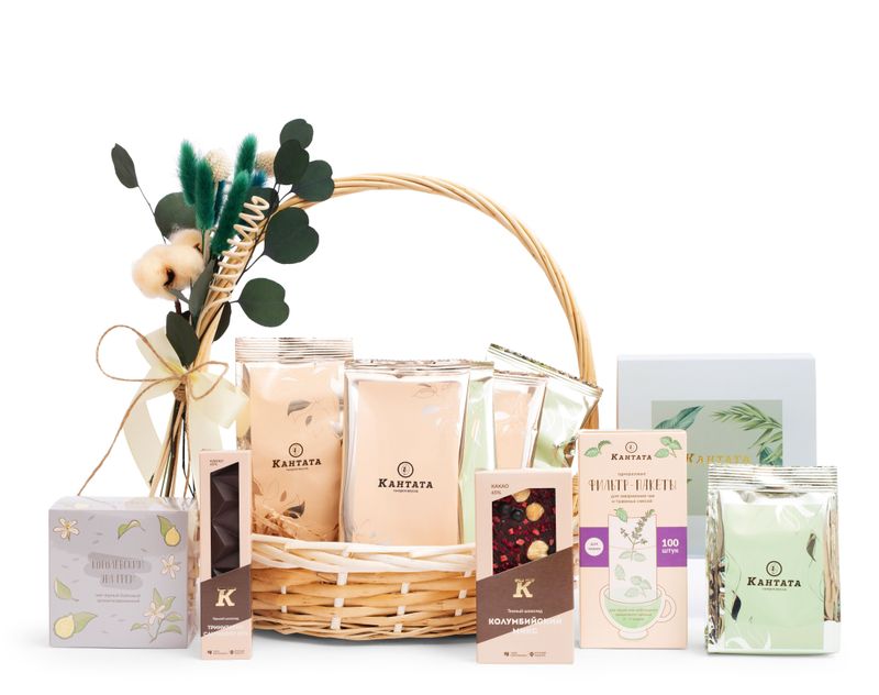 Стильная корзина, полная ярких сюрпризов! Внутри — коллекция ароматного чая девяти сортов, аппетитные десерты ручной работы и аксессуары, чтобы чаепития всегда проходили с комфортом.