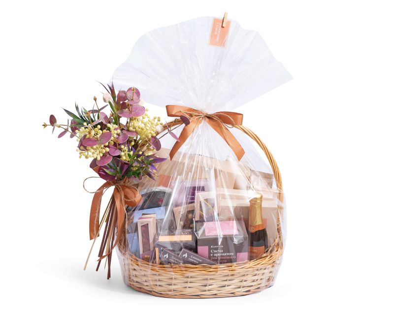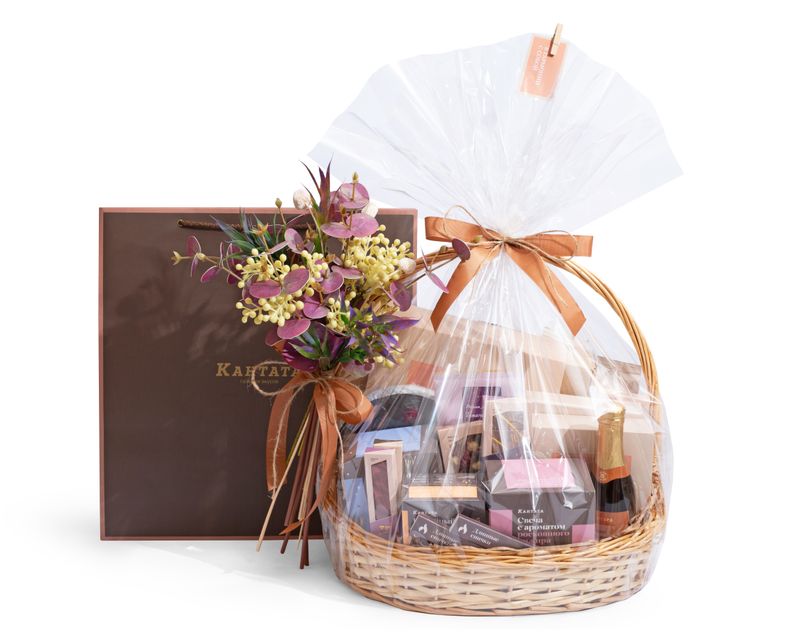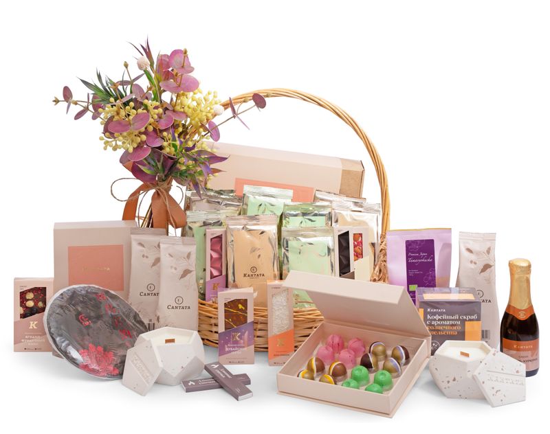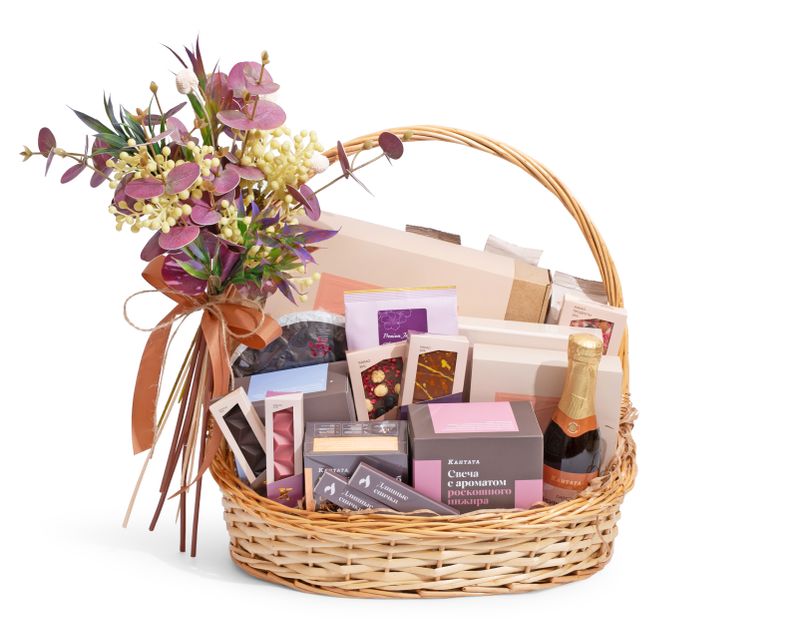Подарок, достойный самых особенных случаев. В этой корзине — изысканные чаи и редкие сорта кофе, десерты ручной работы, авторские свечи, скраб с ароматом апельсина и настоящие вкусы Японии, Ямайки и Галапагосов. Он не просто радует, а восхищает — продуман до мелочей, собран с душой, точно запомнится.