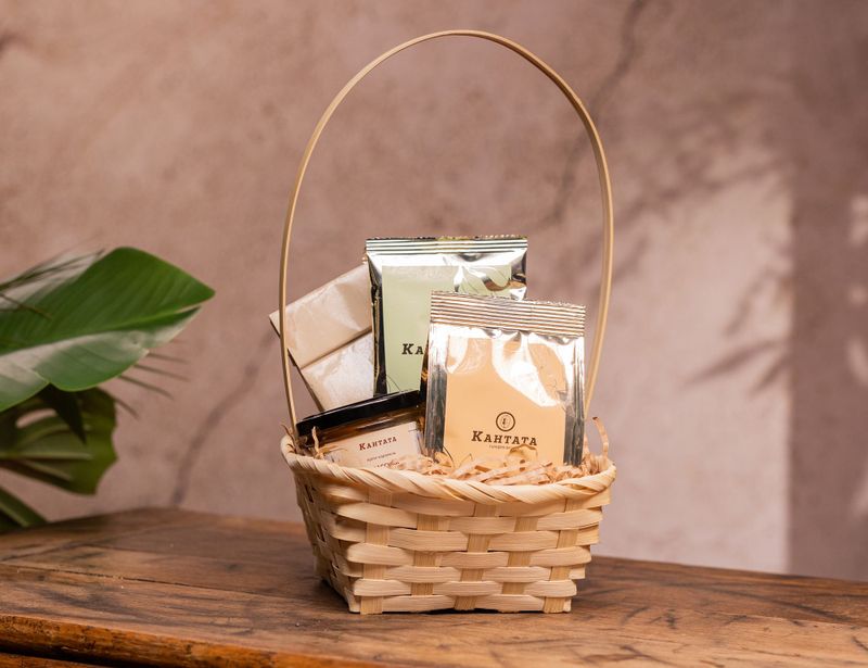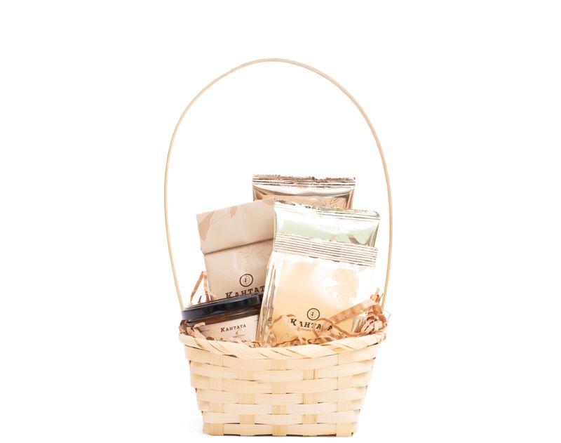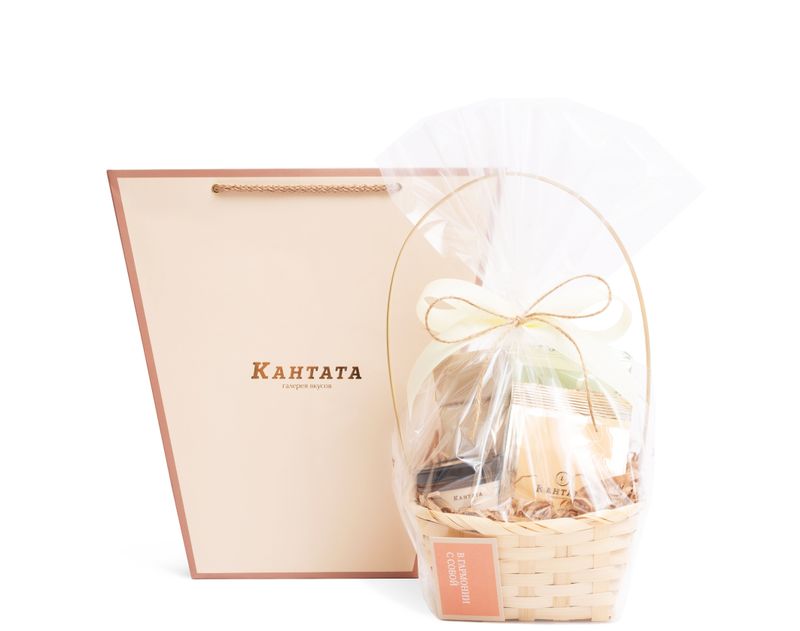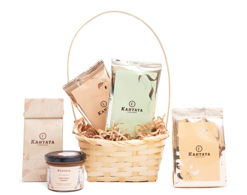 Стильная корзина, в которой столько всего вкусного! Внутри — классический зеленый чай «Белый пух» с природной нотой зелени, купаж черного чая «Кедровое варенье» с уютным пряным ароматом, черный чай «Вишня в шоколаде» с роскошным ягодным звучанием, а также бодрящий кофе «Тирамису Стронг» с нотой знаменитого десерта. Классическая крем-карамель прекрасно дополнит вкусы горячих напитков.