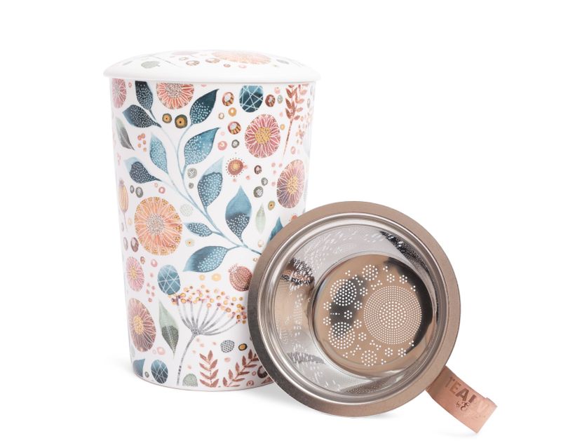 Фарфоровая кружка с металлическим ситом. Подходит для использования и дома, и в офисе. Обеспечит удобное заваривание любимого чая в любых условиях.