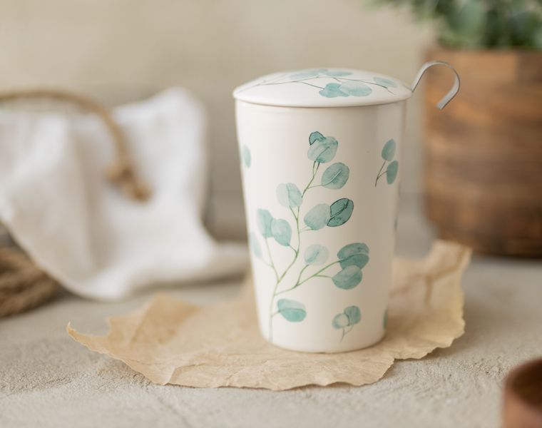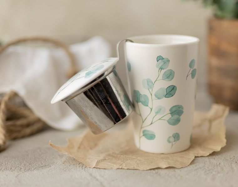 Объёмное сито позволяет заваривать в такой кружке даже самые крупнолистовые сорта чая. После заваривания сито удобно помещается на крышку-подставку, позволяя столу оставаться сухим и чистым.