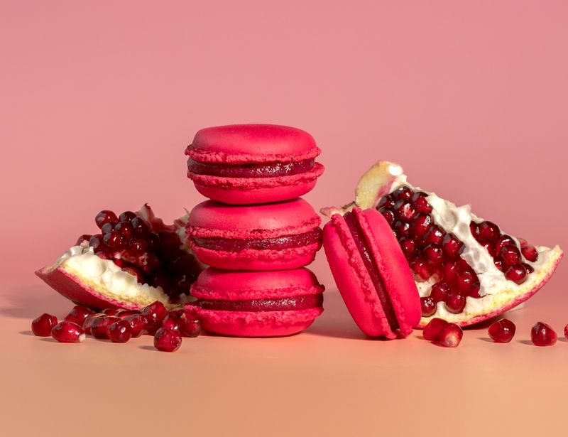 Состав: сахар, пюре гранат, миндальная мука, белок яичный, вода, пюре лимон, пектин, краситель пищевой (e122), кислота лимонная, каррагинан, цитрат натрия, камедь рожкового дерева.