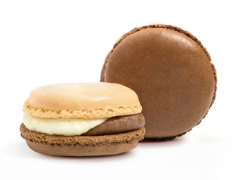 Состав: сахар, миндальная мука , белок яичный, молоко, 3,5%, сливки, 35% (нормализованные сливки, стабилизатор каррагинан), масло сливочное, 82,5%, пюре кокос, вода, мука пшеничная, какао порошок, кокосовая стружка, краситель пищевой (e171, e102, e110, e122, e133), камедь ксантановая, камедь рожкового дерева.