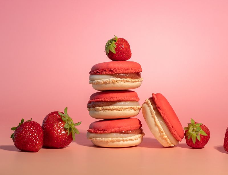 Состав: сахар, миндальная мука, белок яичный, пюре земляника, вода, молоко, 3,5%, сливки, 35% (нормализованные сливки, стабилизатор каррагинан), масло сливочное, 82,5%, мука пшеничная, краситель пищевой (e124, e171), кислота лимонная, пектин, каррагинан, цитрат натрия, кэроб, камедь ксантановая.