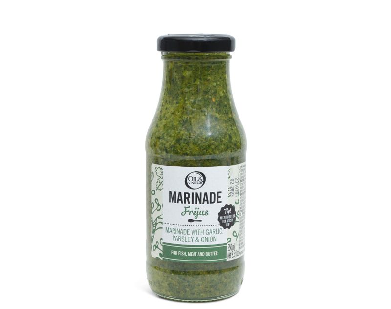Саверад «Фрежюс» — это густой маслянистый соус с кусочками петрушки, чеснока, лука, трав и со специями. Идеален как самостоятельный маринад для рыбных и мясных блюд, не требующий дополнительных компонентов. Поистине удобная основа для создания соусов!