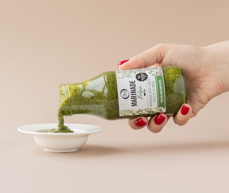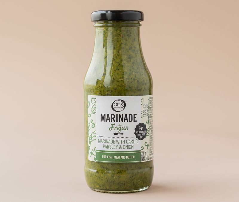 Простой рецепт использования этого маринада: смешайте 1ст. ложку «Фрежюс» и 1ст. ложку сметаны — и вуаля! Вы получили прекрасный соус к крем-супу, сливочно-травяной топинг для закусок или нежный сливочный — для горячих блюд.