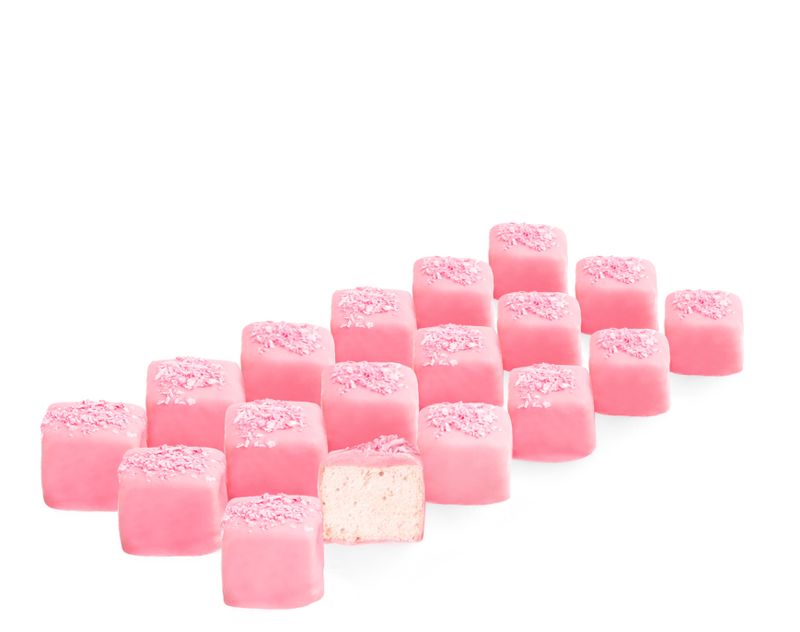 Изысканный, тонкий аромат клубники и кокоса очаровывает. Нежный, сладкий, ягодный вкус десерта дарит незабываемое наслаждение. С каждым воздушным кусочком маршмеллоу словно взлетаешь к розовым облакам сладких мечтаний.