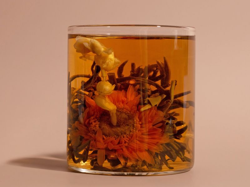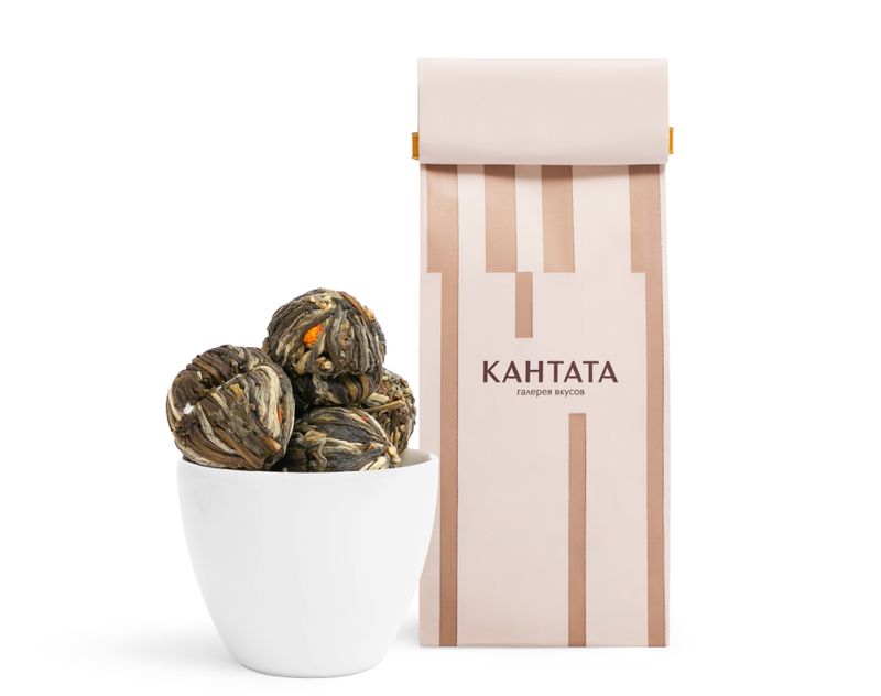 Изысканный чай, способный очаровать даже самого искушенного ценителя! При заваривании шарик плавно и эффектно раскрывается, постепенно освобождая букет нежных цветов.