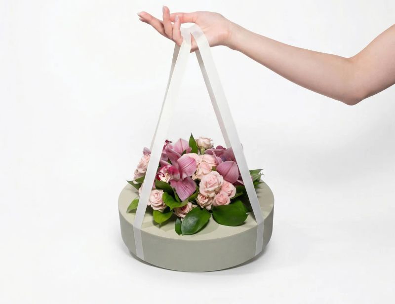 Композицию дополняет букет из орхидей и кустовой розы — элегантный, утончённый, с ощущением праздника.