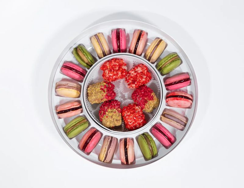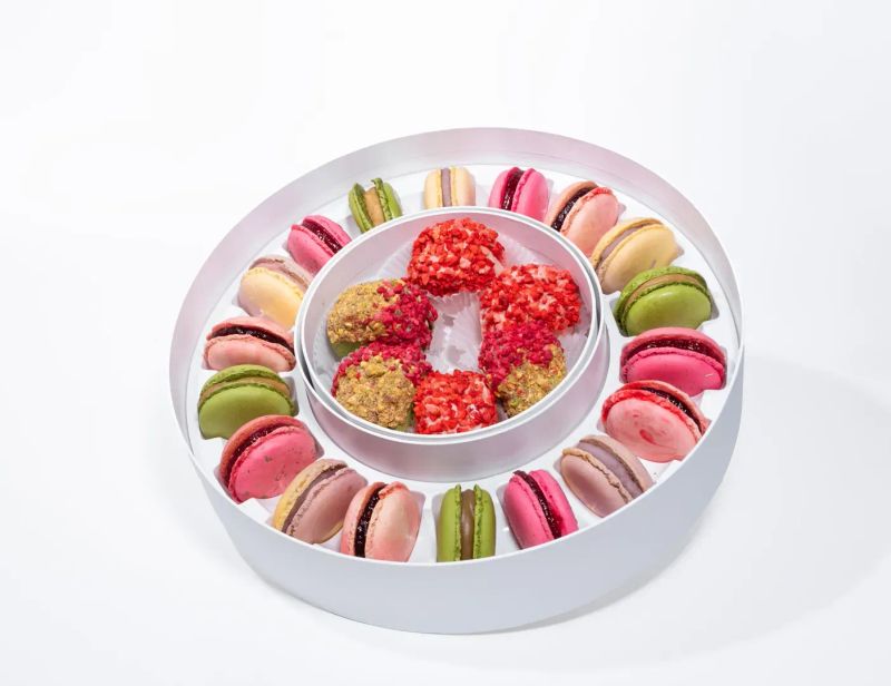 Нежный, утончённый и очень продуманный. В составе фисташка, малина, лаванда, ягодный чизкейк, а также ваубоны с клубникой и маскарпоне и фисташкой с малиновым конфи.