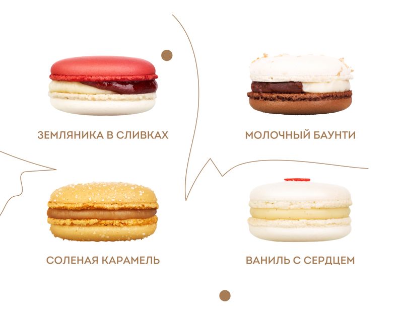 Идеальный выбор, чтобы свидание прошло наилучшим образом! Фруктовые, сливочные и шоколадные вкусы макаронов делают этот подарок идеальным сюрпризом, способным растопить даже ледяное сердце.