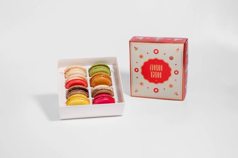 Внутри 8 пирожных макаронов из классической линейки Mon Bon: любимые вкусы, новогодние цвета и безупречная текстура. Это ассорти словно собрано из разных глав зимней сказки, для тех, кто любит удивляться и угощать.