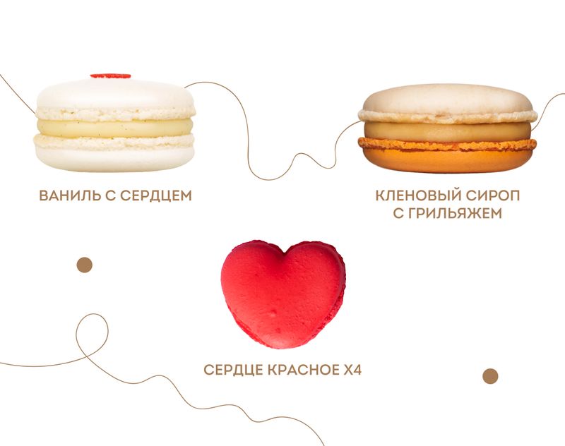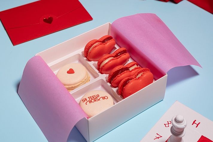 Откройте для себя романтику с набором «Мысли о тебе». В этом наборе вы найдёте четыре красных сердечка и два классических макарона с надписью «Я тебя люблю». Каждое пирожное выполнено в уникальном дизайне, который подчёркивает вашу любовь и заботу. Красные сердечки наполнены ягодно-сливочной начинкой, которая взрывает вкусовые рецепторы, а макарон с надписью «Я тебя люблю» добавляют личного прикосновения.