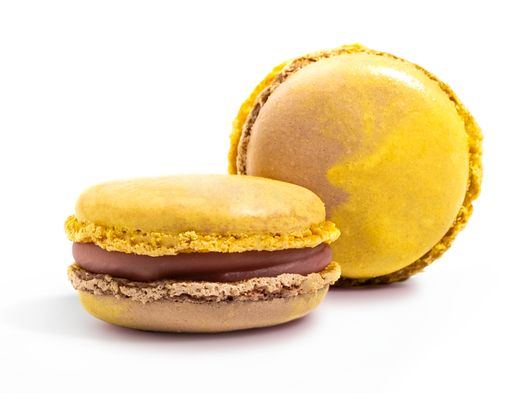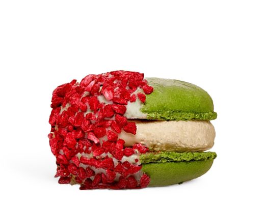 Насыщенный вкус крема из бескомпромиссно стопроцентной фисташковой пасты раскрывается, как нигде, именно в сочетании с хрупкими миндальными половинками макарона.