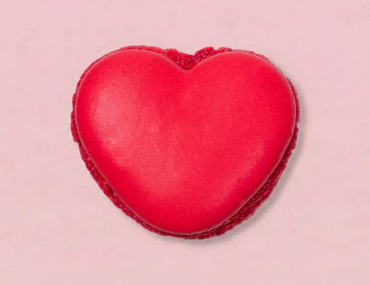 Набор из трёх макаронов в форме сердца «Земляника в сливках» — маленькое признание в любви, которое говорит за вас.