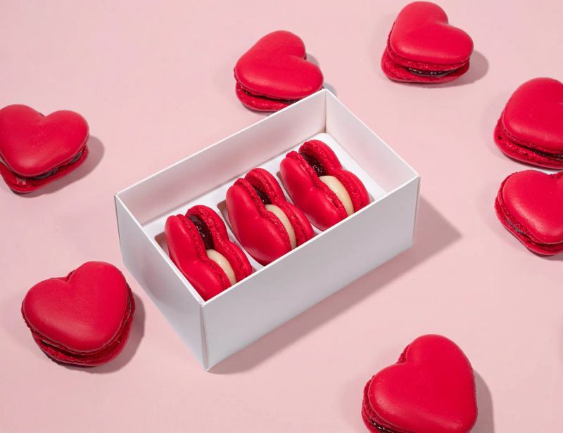 Набор из трёх макаронов в форме сердца «Земляника в сливках» — маленькое признание в любви, которое говорит за вас.