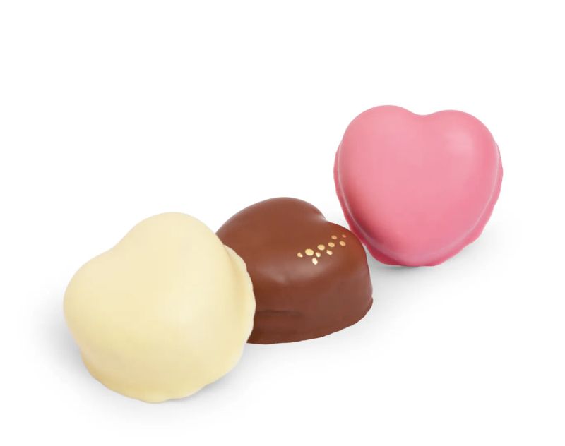 Маршмеллоу со вкусом гуавы в нежных объятиях молочного шоколада. Тропическая вкусовая палитра гуавы с ее мягкой сладостью и округлым послевкусием дарит настоящее удовольствие сладкоежкам. Молочный шоколад добавляет десерту сливочные ноты какао, а золотой декор, нанесенный вручную, делает каждое сердечко особенно выразительным и праздничным.
