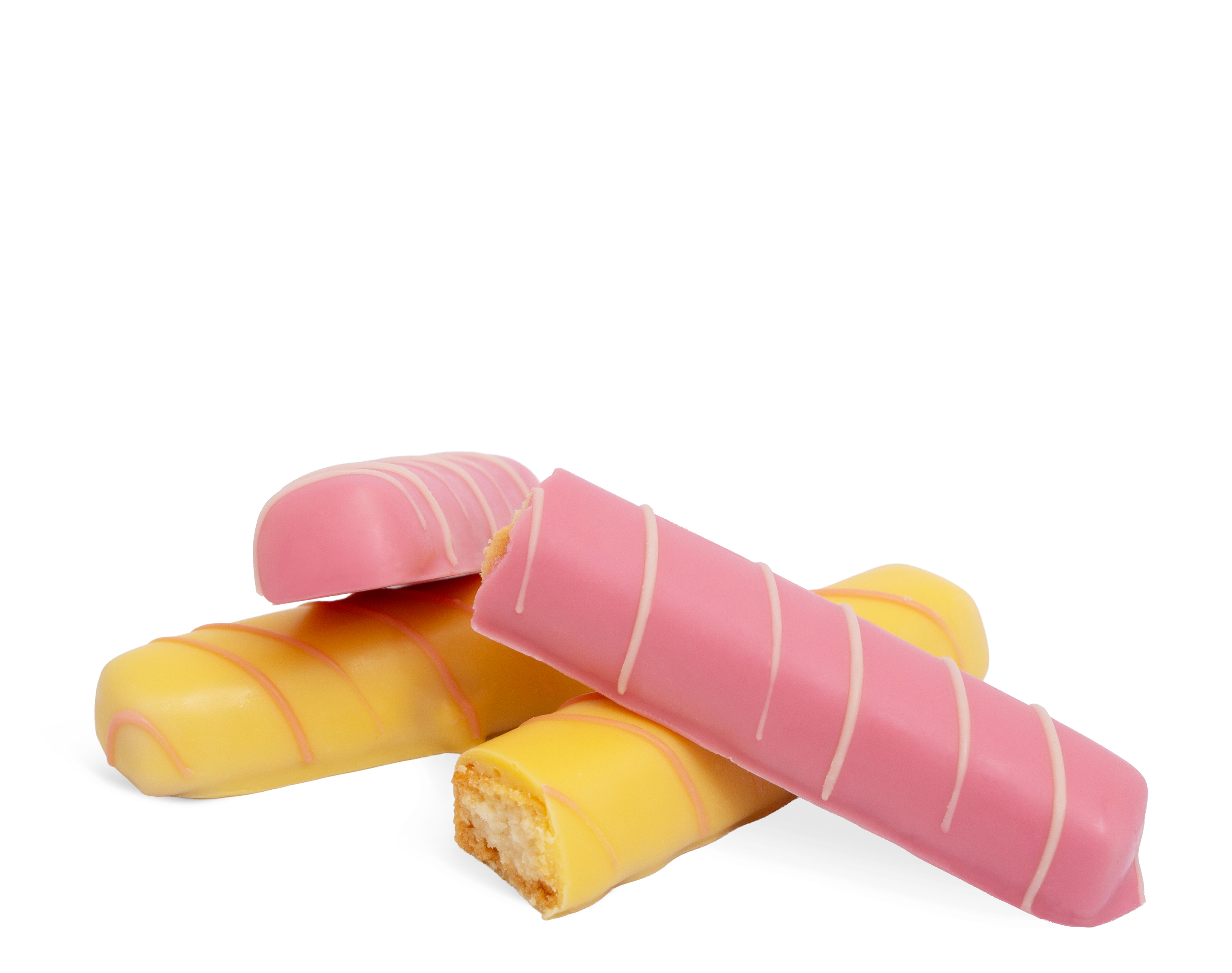 Печенье в клубничном шоколаде: печенье (мука пшеничная высший сорт, масло сливочное (82,5%), сахарная пудра, яичная смесь (пастеризованный яичный желток, сухой яичный белок, вода), разрыхлитель для теста (мука пшеничная, разрыхлители: дигидрофосфат натрия, гидрокарбонат натрия)), белый шоколад со вкусом клубники (сахар, какао-масло, сухое цельное молоко, эмульгатор: соевый лецитин; ароматизатор: клубника; краситель: кармин; натуральный ароматизатор: ваниль), белый шоколад (сахар, какао-масло, сухое цельное молоко, эмульгатор: соевый лецитин; натуральный ароматизатор: ваниль).