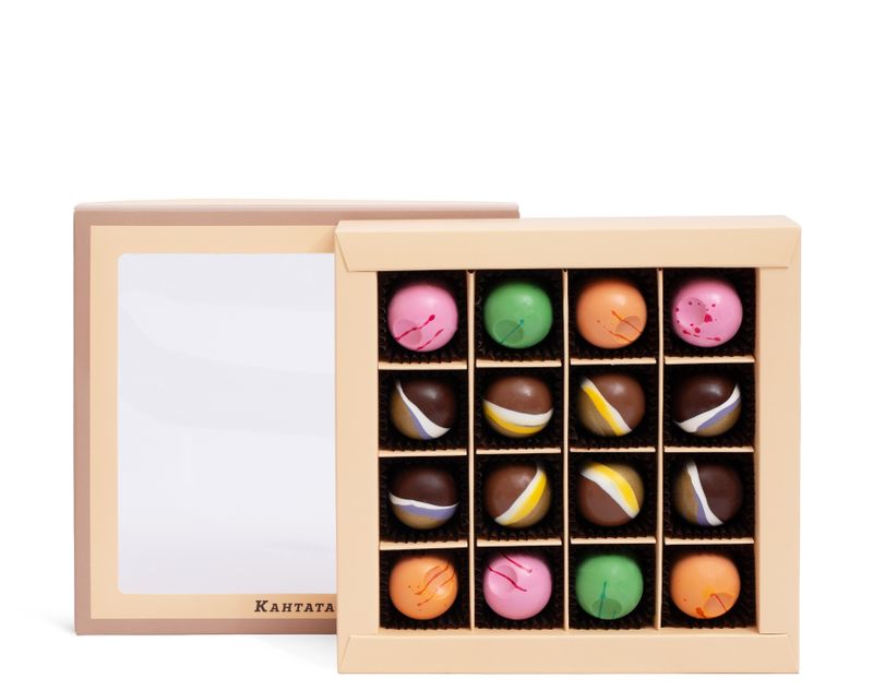 В набор входит пять вкусов корпусных конфет в новой форме: Соленая карамель, Ягодный маффин, Ассорти Самоцветы.