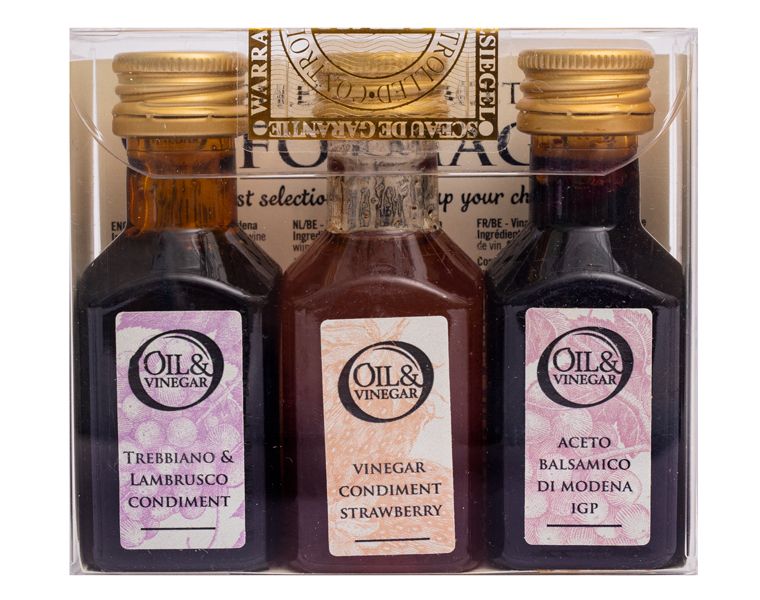 Коллекция уксусов для сыра производится из винограда Ламбруско и Треббиан, который растет только в районах Сехия и Панаро в Италии. Из-за суровой зимы и жаркого лета эта местность идеально подходит для ферментации виноградного сусла и изготовления восхитительного бальзамического уксуса. Семья производит уксусы с 1909.