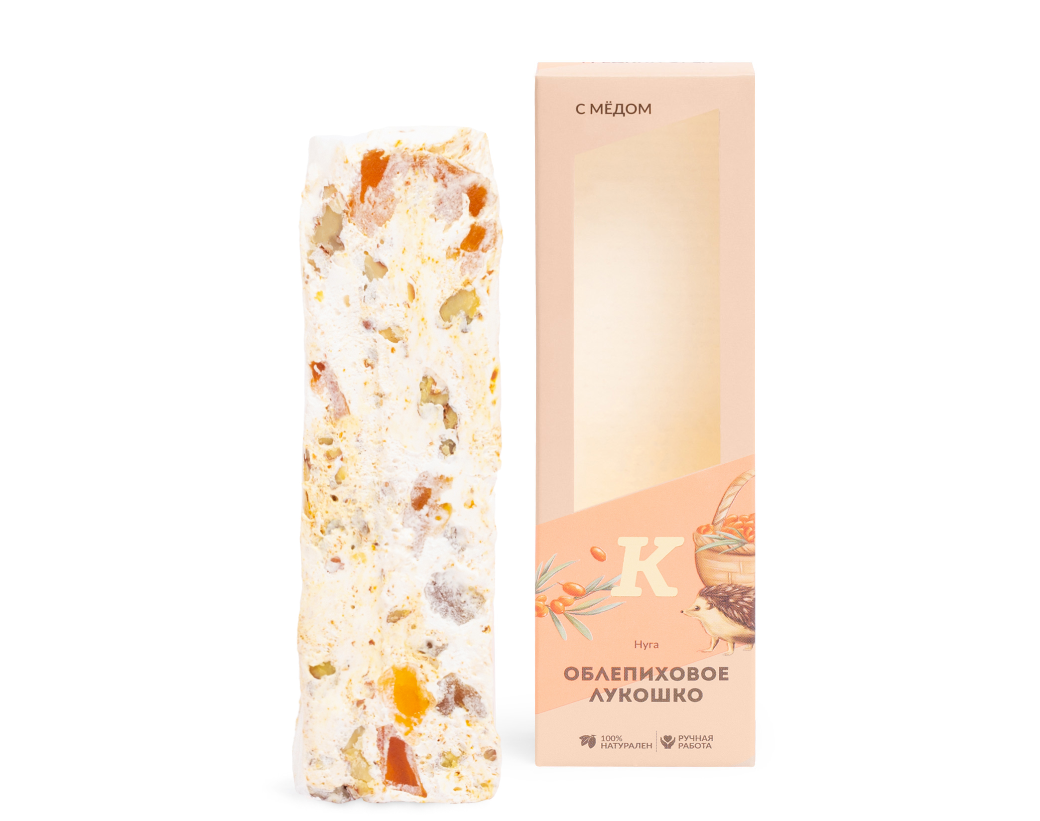 Эта нуга — точно лукошко облепихи из любимой сказки! Она не только вкусная, но и очень полезная. Мягкая сладость меда закружит вас с задорном танце вместе с кислинкой облепихи, подарит яркое впечатление как в сочетании с чаем, так и с кофе.