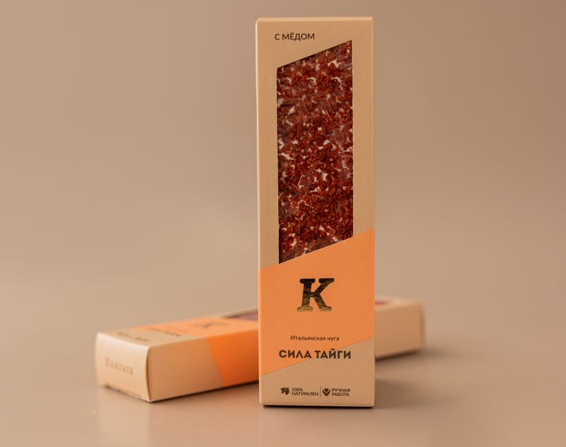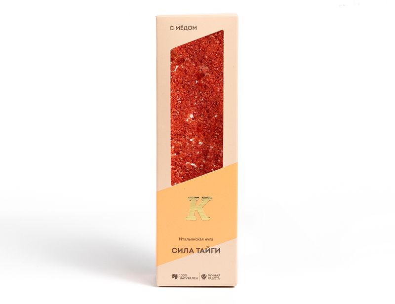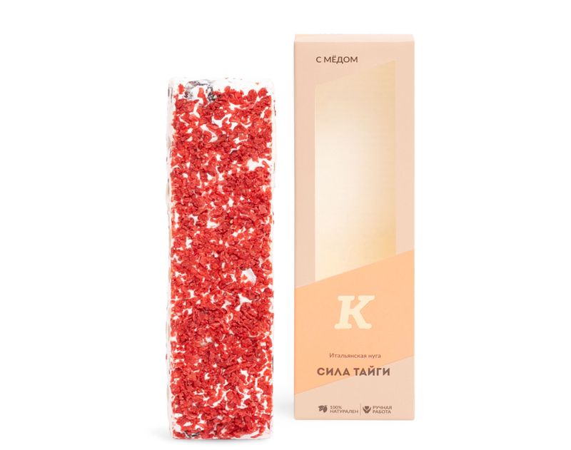 Для получения этого десерта кондитеры взбивают яичный белок с добавлением меда до образования тягучей воздушной массы. Затем в нее добавляют теплые кедровые орехи и сушеную клюкву, снова тщательно перемешивают. Полученную массу выкладывают в форму, посыпают хрустящим малиновым кранчем и оставляют на некоторое время для застывания. Готовую нугу кондитеры бережно разрезают и упаковывают, чтобы она не потеряла мягкость.