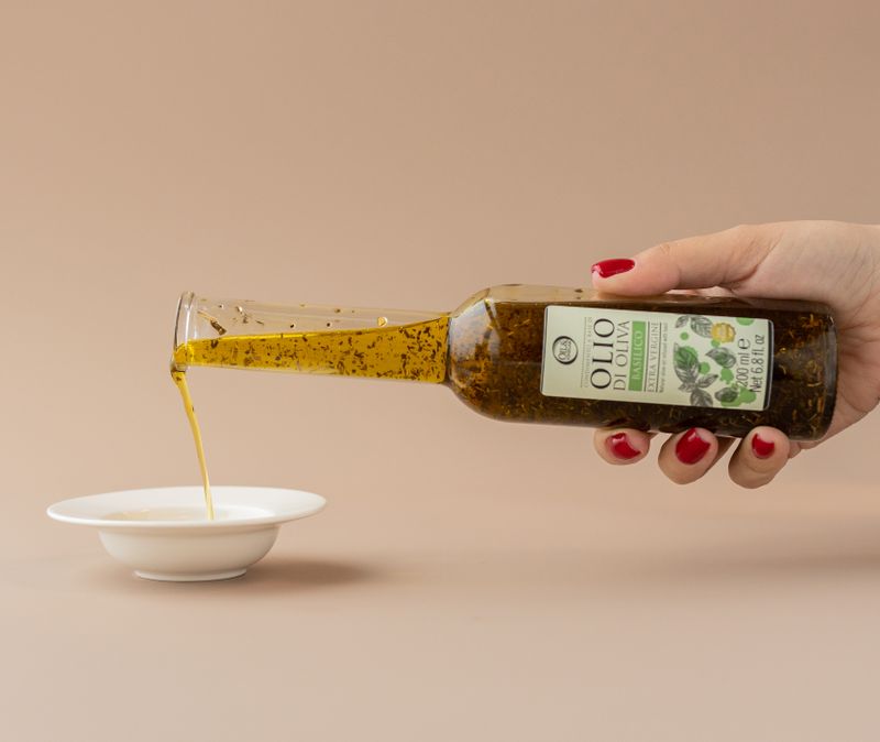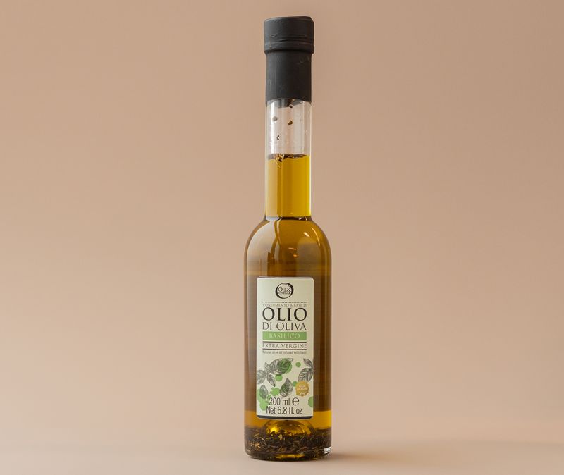 Оливковое масло высшего сорта из Тосканы с ароматным базиликом.
