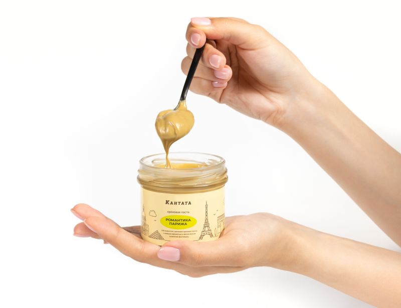 В составе лакомства 47,5% фисташки — это «самая ореховая» паста Кантаты. Густая, нежная, пленительная, она обладает умерено сладким вкусом. А сливочный аромат фисташки раскрывается нотами дыни и цветов.