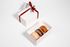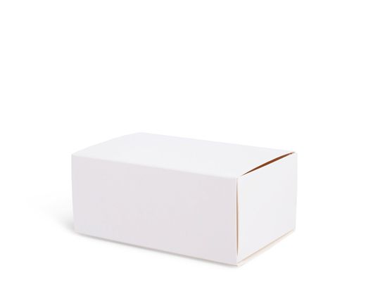 3 пирожных в упаковке из белого картона и бирка с вашим логотипом.