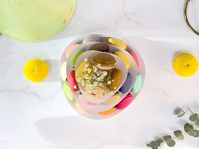 Все пирожные макарон в одной изящной пирамидке! Каждое содержит до трех начинок и миллион шансов угодить адресату. Впечатляющий и эффектный подарок для похода в гости, на свадьбу, экзамен или день рождения.