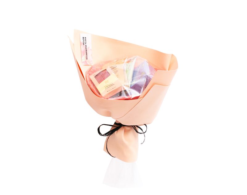 Нежный солнечный букет, который точно подарит улыбку! В подарок мы поместили три ароматных чая — «Пламенный грейпфрут» с жаркой нотой цитруса, «Нежность жасмина» с цветочным звучанием и «Черную смородину» со сладким ягодным вкусом. Авторский шоколад с шелковистым вкусом гречихи и малины выгодно подчеркнет любимые напитки.