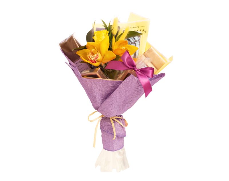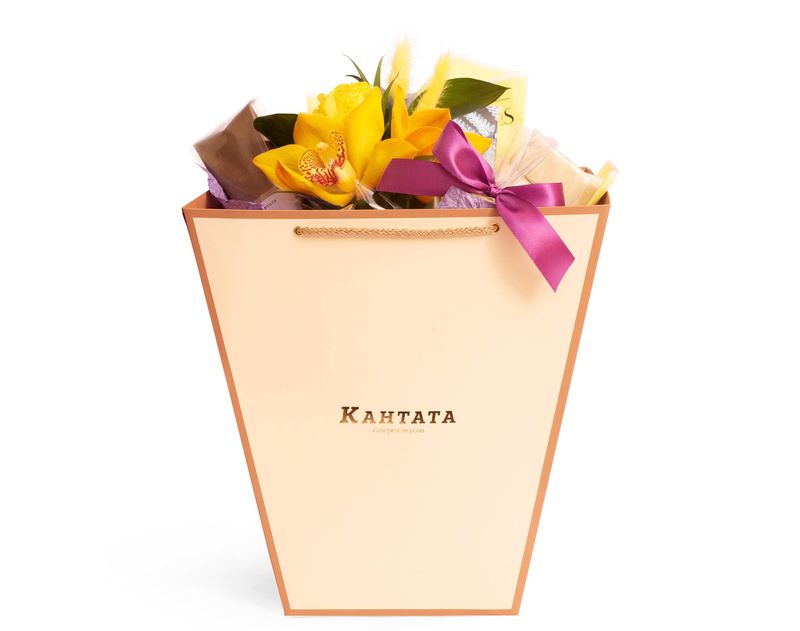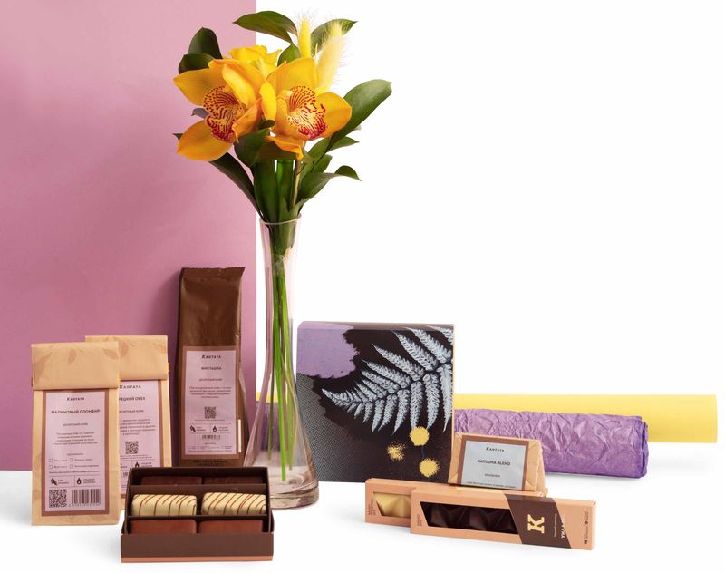 Подарок для истинного ценителя кофе – букет с живыми цветами! В подарке дорогой сердцу человек найдет такие кофейные сорта, как классический «KatushaBlend», так и десертные «Грецкий орех», «Фисташка», а также сорт «Малиновый пломбир». Дополняет подарок набор воздушных джандуй в шоколаде.