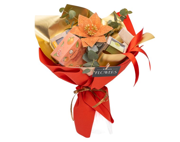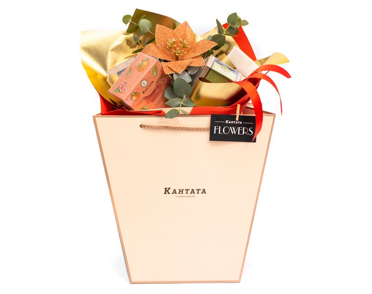 Букет содержит в себе новогоднюю новинку чая 2020 года «Всё сбудется!»