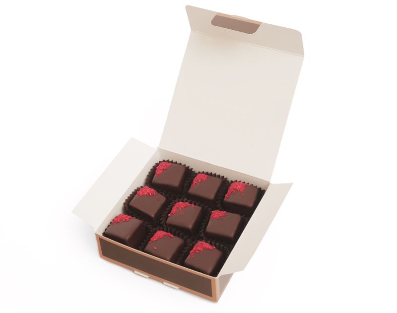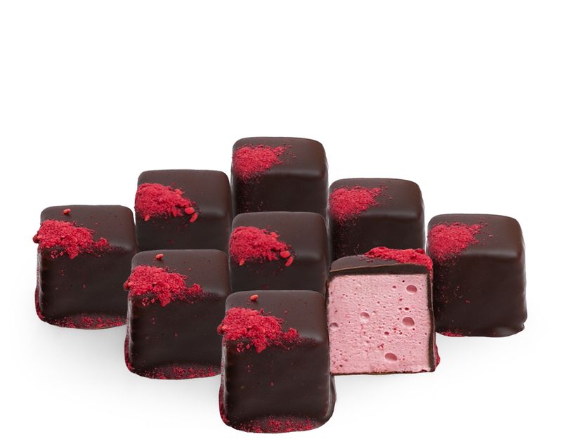 Нежное маршмеллоу, заключенное в оболочку из темного шоколада, поражает своим ярким малиновым вкусом, прекрасно сочетающимся с ягодными нотками присущими темному шоколаду.