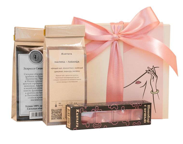 Чай «Малина-лаванда» — чёрный чай с ароматом малины. Приятный тонизирующий настой, с ягодно-лимонной кислинкой и тонкой нотой лаванды в послевкусии. Кофе «Эспрессо Сицилиано» — крепкий, с характером, с оттенками горького шоколада и пряностей. Для бодрости в любое время суток. Уникальная плитка рубинового шоколада порадует цветочно-сливочным вкусом, с оттенками ореха кешью.