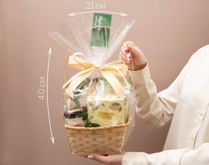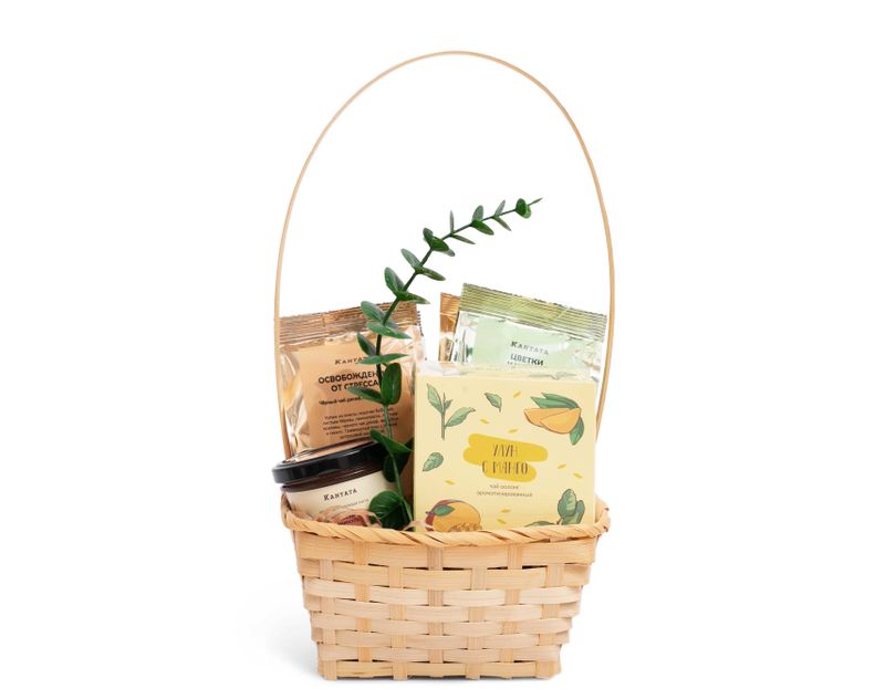 Изящная корзина приятно удивит дорогого вам наставника! Внутрь набора мы поместили пять душистых чайных сортов на любой вкус — сочный улун с манго и купаж зеленого чая «Цветки кактуса», ароматный купаж черного чая «Ягодная пастила» и успокаивающая смесь «Освобождение от стресса», а также «Белый пух» — классический зеленый чай с нотками орехов и юной зелени. На десерт в подарке — аппетитная шоколадно-ореховая паста «Римские каникулы», приготовленная из фундука.