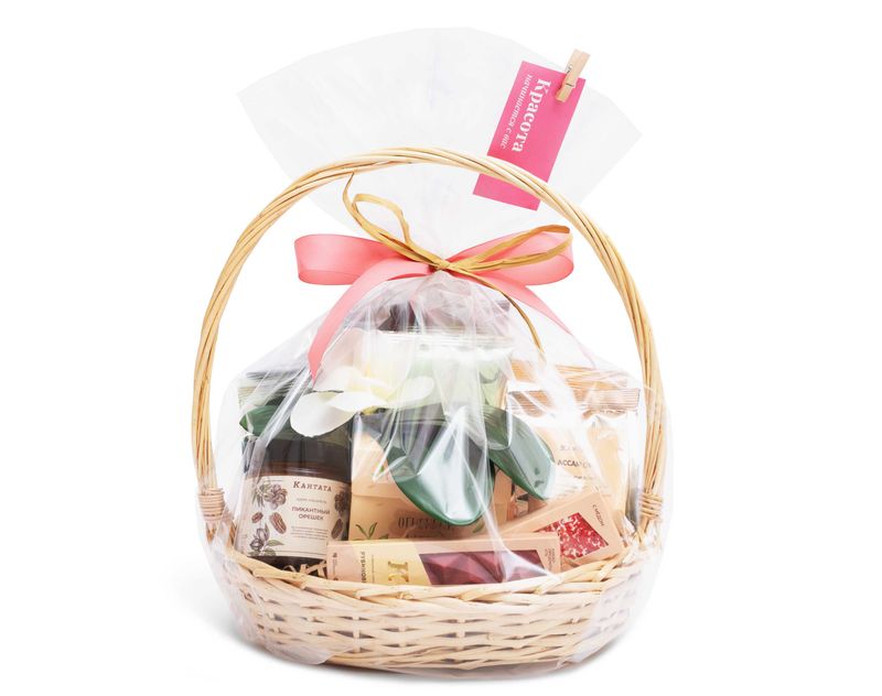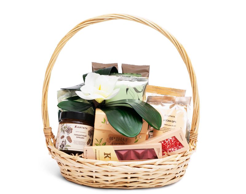 Великолепная корзина, напитки и десерты из которой подарят удивительное вкусовое впечатление. В наборе — шесть видов чая, среди которых найдутся сорта на любой вкус: черный и зеленый чай, десертные купажи и классика. Добавили и два вида кофе — «Эспрессо Масалто» с оттенками сливок и горячего хлеба и «Сникерс» с аппетитным звучанием арахиса в шоколаде. На десерт — сытная нуга «Сила Тайги» со смолистой нотой кедра, плитка редкого рубинового шоколада, нежная крем-карамель из грецкого ореха и пекана, которая превосходно дополнит напитки и любимую выпечку.