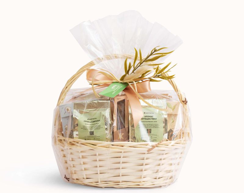 Отправьтесь в путешествие по миру чая! В наборе найдутся такие чайные купажи, как сливочный «Огненный цветок», «Индийский океан» с тропическими фруктами, «Сердце Африки» с бананово-малиновыми нотами, утонченный сорт «Нежность жасмина», пестрый «Аромат путешествий» и уютный «Стоп-стресс». Помимо десертных сортов чая, найдется и классика – легендарная «Кения Тиндерет». К чаю в набор мы добавили тающую на языке плитку шоколада «Нежные облака» и конфеты «Черри» с пьянящей вишенкой.