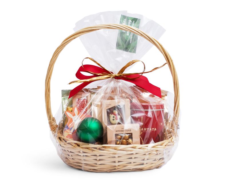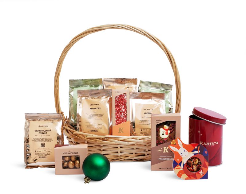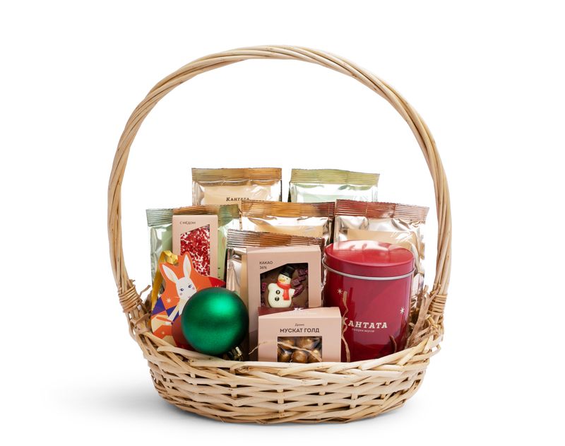 Кажется, все новогоднее волшебство собрано в этой превосходной корзине! Ведь за ее уютными плетеными бортами – душистая и многогранная коллекция согревающего чая – шесть напитков, которые долго будут радовать своим вкусом и дарить уютное настроение. В корзину мы добавили два незаменимых аксессуара – стильную баночку для хранения любимого напитка и яркий новогодний шар – для украшения елочки. Праздничное настроение дополнят и десерты – золотистые, словно искры бенгальских огней, драже «Мускат Голд», пряный шоколад «Глинтвейн» с фигуркой снеговика внутри и сладкий медиант – «Символ года».