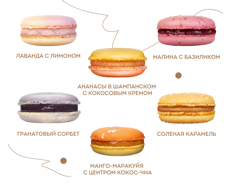Каждое пирожное содержит от 70 до 110 Ккал — меньше, чем в одном бокале шампанского.