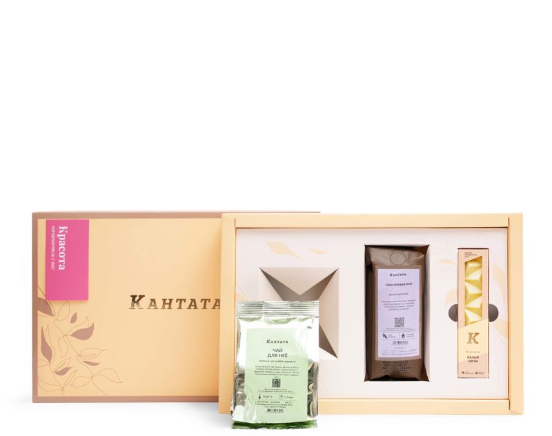 Изящный подарок для ценительницы непревзойденного вкуса. В наборе — душистый зеленый «Чай для нее» с пряностями и ягодами, десертный кофе с аппетитным звучанием «Орех Макадамия» и плитка шоколада «Белые ночи», которая великолепно дополнит напитки.