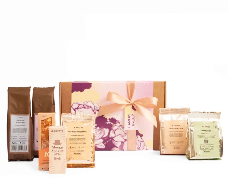 Изысканный подарок для самой обаятельной. В набор мы положили три вида ароматных чайных купажей – ягодную «Лесную сказку», пеструю «Грушу с гранатом» и черничную «Гармонию», а к ним – два вида кофе: десертный сорт «Карамель» и легендарный классический «Никарагуа Марагоджип». На десерт в подарке найдутся воздушная нуга «Маскарпоне» и нуга с арахисом.
