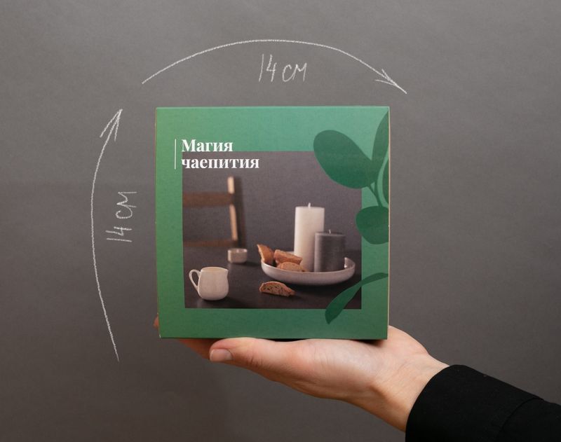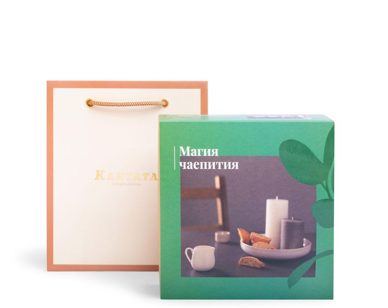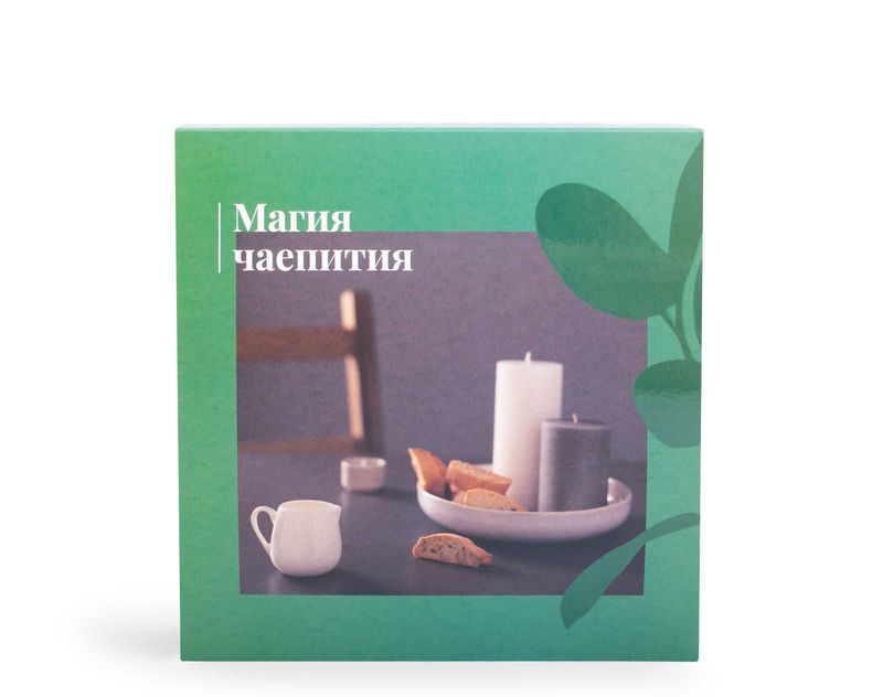 В этот дизайнерский подарок мы вложили ароматный черный чай «Малина-Лаванда», сладкую и нежную нугу «Вишневый сад» и плитку молочного шоколада с бархатистой фисташкой.