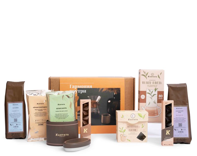 Изящный подарок со стильным дизайном! В подарок мы вложили три вида чая – купаж черного чая «Черная смородина» с приятной сладостью во вкусе, купаж зеленого чая «Белая сакура» с цветами и вишней, сливочный улун «Огненный цветок» в индивидуальных пакетиках. Чтобы чай было удобно готовить, добавили в подарок фильтр-пакеты для заваривания. Дополнили набор двумя видами кофе – десертным сортом «Ирландский крем» с нотами виски и классическим купажом арабики «Хаус Бленд». Чтобы кофе надолго остался ароматным, положили в набор стильную баночку для хранения. На десерт в подарке найдутся два шокобара из молочного и горького шоколада.