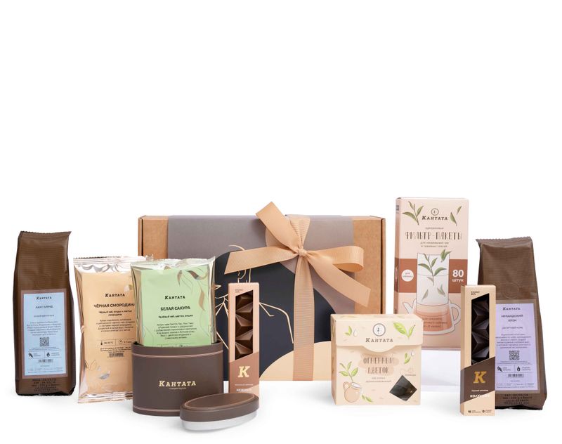 Пусть вдохновение не покидает, пока в чашке — любимый ароматный напиток! В наборе — согревающий купаж черного чая «Черная смородина» и зеленый чай «Белая сакура» со сладким оттенком спелой вишни и кокоса, а также мечтательный улун «Огненный цветок» в индивидуальных пакетиках. Чтобы каждое чаепитие проходило с комфортом, добавили удобные фильтр-пакеты для заваривания. Не забыли и про кофе — в подарке найдутся классический сорт «Хаус Бленд» с плотным ароматом и деликатной горчинкой, а также «Ирландский крем» — десертный сорт со сливочным звучанием жгучего виски. Чтобы любимый напиток надолго сохранил свой удивительный вкус и аромат, добавили в набор стильную баночку для хранения. На десерт — плитка молочного шоколада «Нежные облака» и горький шоколад «Колумбия» с насыщенным ароматом какао и нотами меда, орехов и специй.