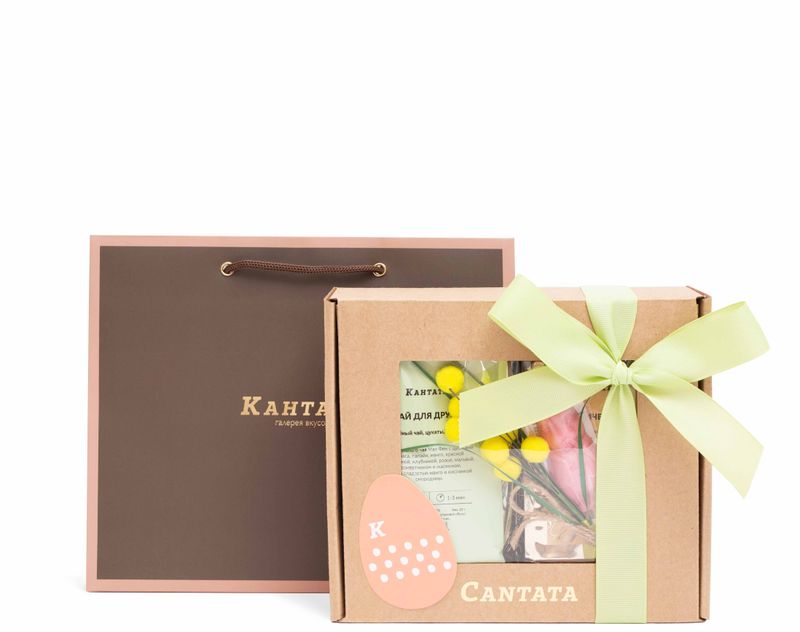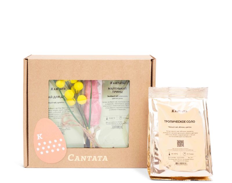 Подарите близкому человеку вкусную сказку! Подарок мы украсили яркой веточкой мимозы, а внутрь вложили три согревающих купажа: солнечный черный чай «Тропическое соло», мечтательный купаж зеленого чая «Маленький принц» и сочный «Чай для друга» – также на основе зеленого чая. Задорная фигурка Братца Кролика – символа Пасхи – дополнит ароматные напитки своим шелковистым клубничным звучанием!