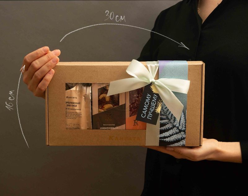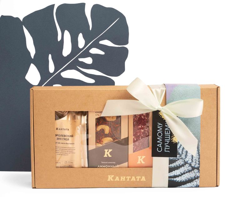 С таким подарком чаепитие пройдет просто чудесно! В набор мы положили два вида чая – это зеленый чай «Загадка маленького Будды» с белым гибискусом и жасмином, а к нему – легендарный Королевский Эрл Грей, знакомый каждому своим неповторимым звучанием бергамота. На десерт в подарке найдется нуга и молочный шоколад на меду.