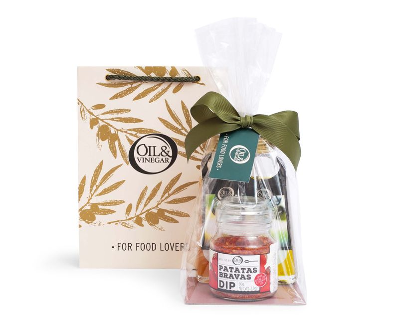 Гурмэ-трио для украшения любого застолья! В подарке – известная испанская смесь специй «Дип Пататас Бравас», ароматное оливковое масло с тосканскими травами и по-летнему яркий уксус с манго.