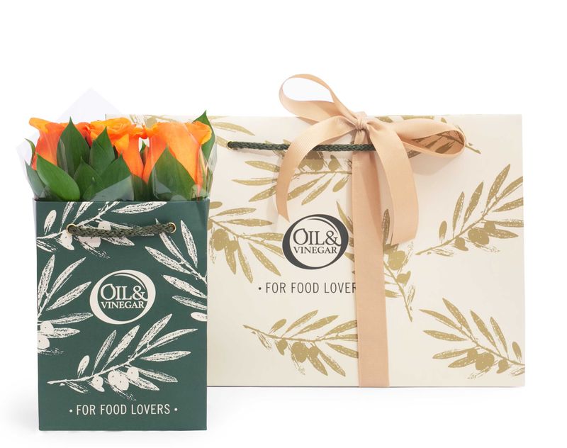 Набор, который сделает любое застолье по-настоящему изысканным! Подарок мы украсили живыми цветами, внутрь поместили пеструю пасту «Апулия», ароматное оливковое масло для пиццы и пасты, а также диппер «Тоскана» – универсальную специю для приготовления блюд.