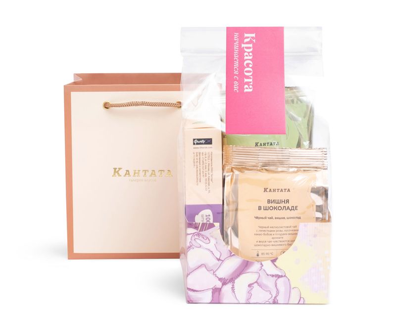 Нежный подарок, который станет приятным сюрпризом! В нем найдутся душистый черный чай с нотами вишни и какао, купаж черного чая с тропической нотой соусепа и нежный зеленый чай, который вдохновит звучанием шиповника и земляники. Чтобы готовить напитки было удобно, мы добавили в подарок фильтр-пакеты для заваривания.